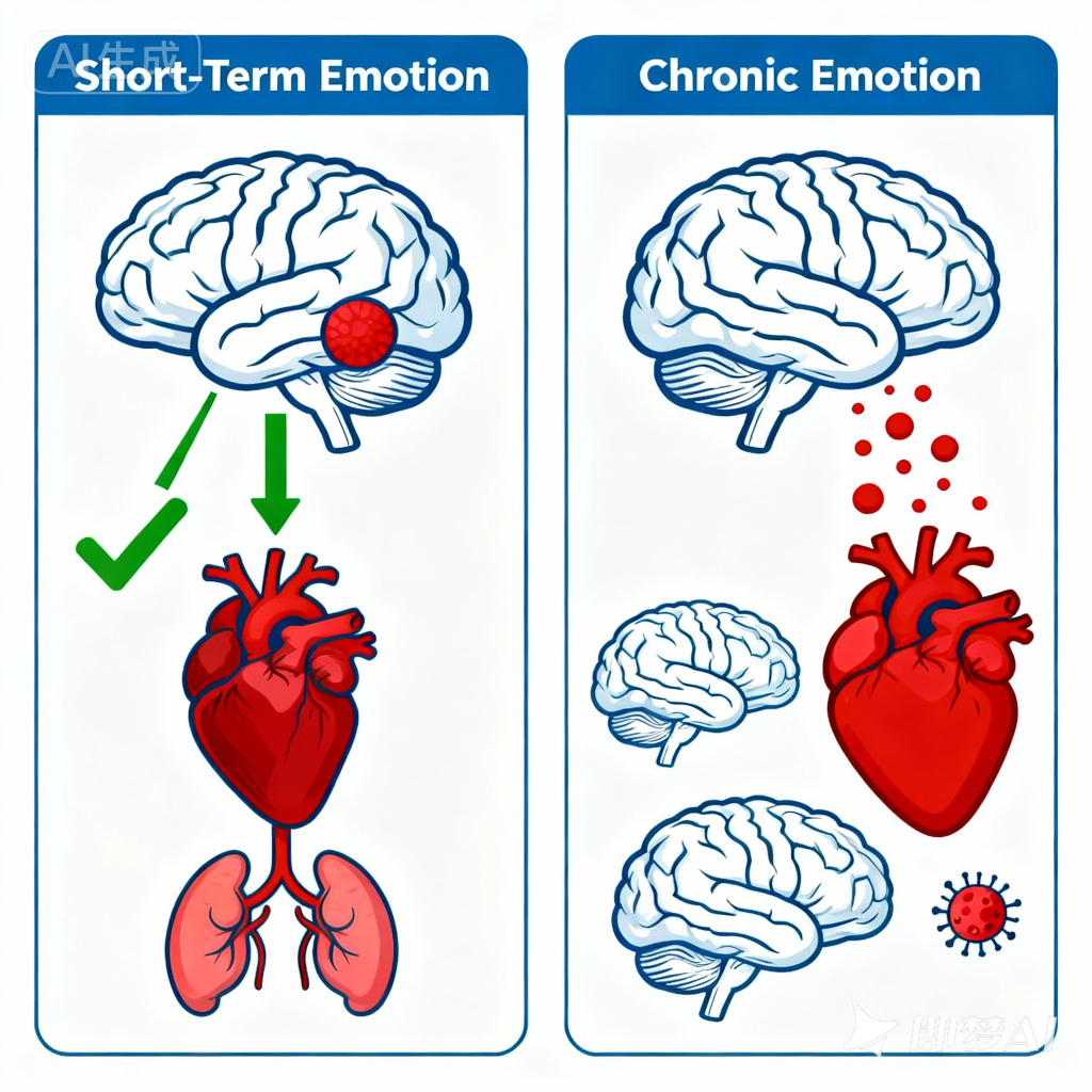 然而,问题在于,现代社会很少需要我们真正地“战斗”或“逃跑”,但我们的身体却依旧忠实地执行着这套古老的程序。当急性情绪退去,慢性情绪(如长期的焦虑、持续的怨恨、挥之不去的悲伤)开始占据主导时,它就会从生存工具转变为损害健康的双刃剑。
