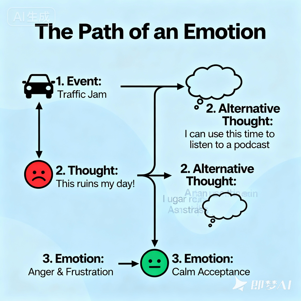 我们的情绪并非直接由事件引起,而是源于我们对事件的解读和想法。