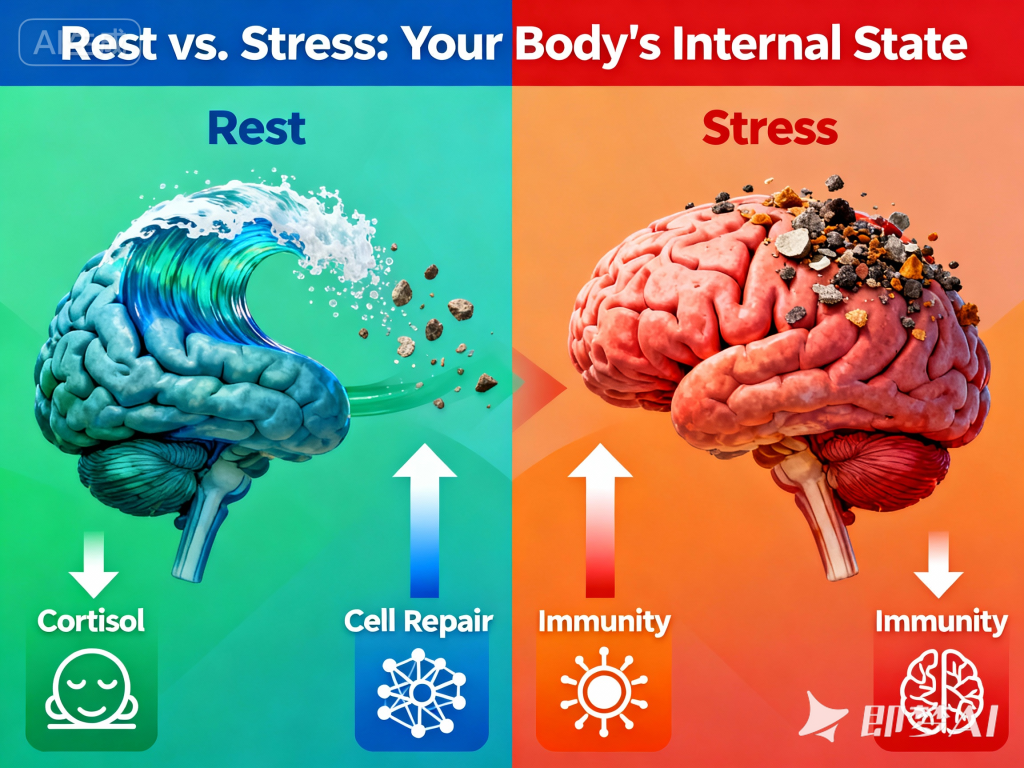 - 细胞的修复与再生:休息时,身体能量从对外部任务的关注转向内部维护。细胞修复速度加快,蛋白质合成增加,免疫系统也得以修整和加强。